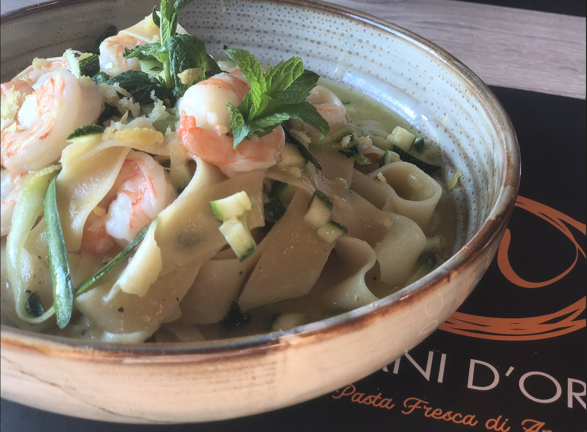 Pappardelle with lemon, scampi, courgettes and fresh mint